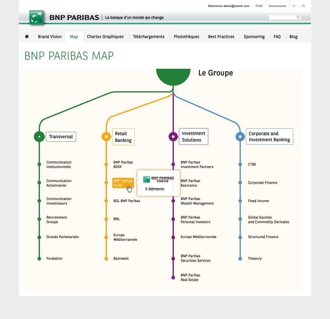 Dispositif présentant tous les outils nécessaires à l’univers de la marque. Plateforme interne de recherche et de téléchargement.