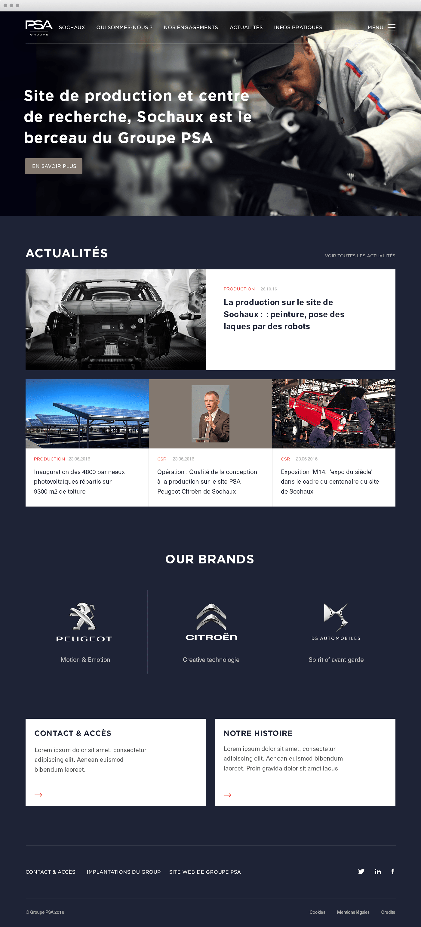 Refonte des sites implantations et pays du Groupe PSA. Définition d'un modèle type, pour déploiement des multiples sites pays et implantations.