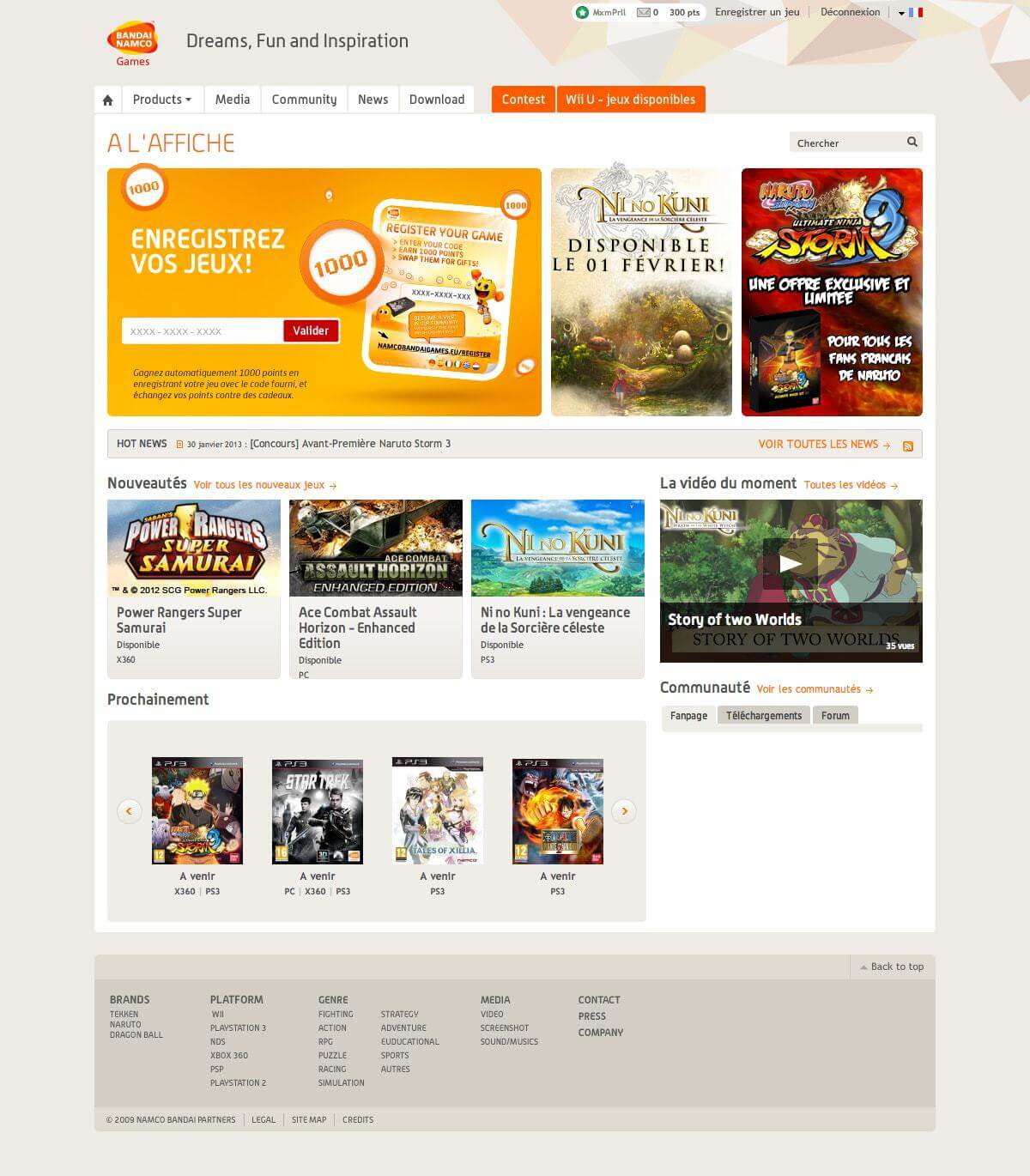 Plateforme institutionnelle de Namco Bandai Games et de promotion des différents jeux vidéos et communautés de joueurs.