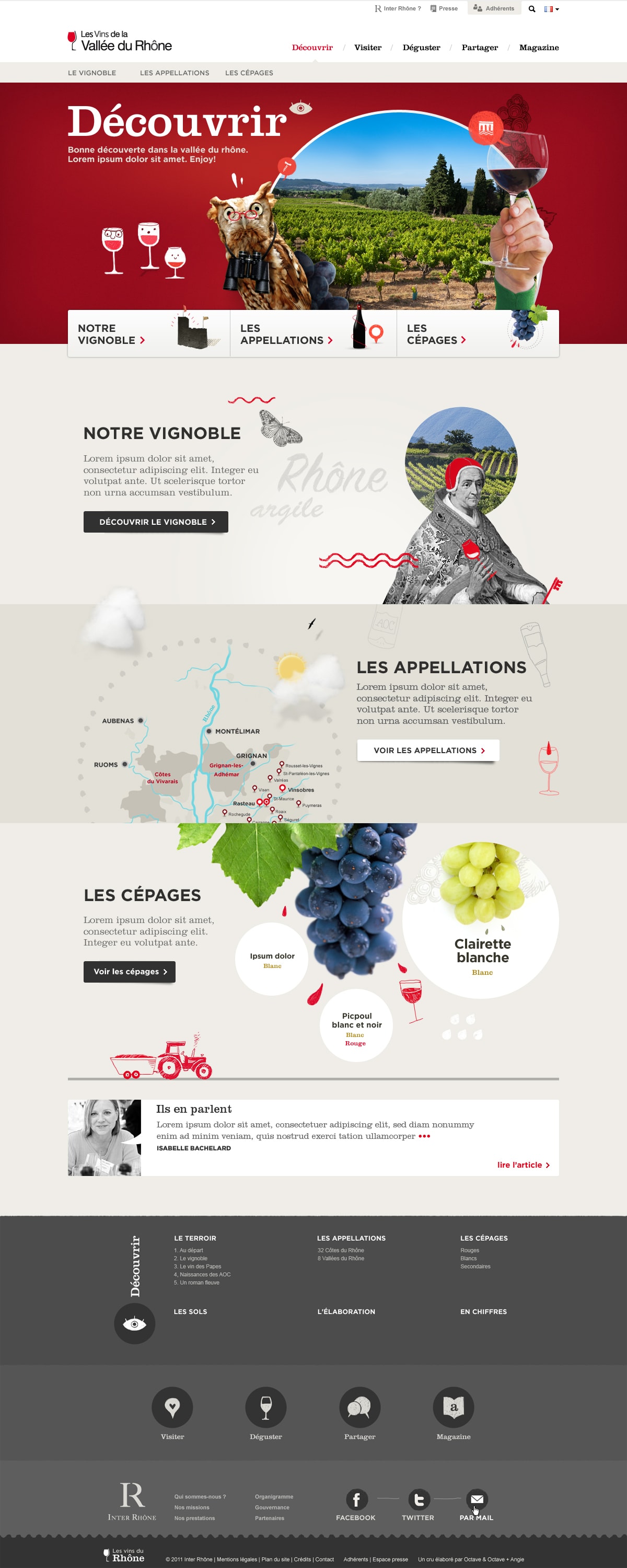 Vins Rhône Site de l’interprofession des vins de la vallée du Rhône et des côtes du Rhône. clientInter Rhôneannée2011-2014lienvins-rhone.comcatégoriecenturion, design, front-end, illustration, interface utilisateur, multi-langue, multi-site web, zend frameworkétiquettesAngie, Gestion de projet Web, Octave & Octave